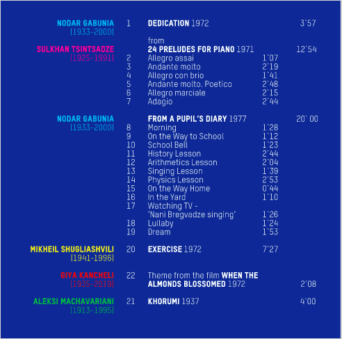 Works by Sulkhan Tsintsadze, Nodar Gabunia, Mikheil Schugliashvili, Aleksi Machavariani and Gyia Kancheli