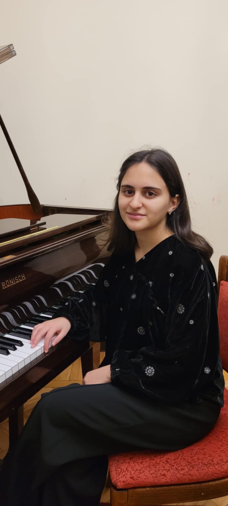 Nino Kasrelishvili aus der Region Gurjaani (Kacheti) ist in 2004 geboren. Sie ist seit 2021 Stipendiatin der Stiftung. Im Sommer 2024 wird sie das Musikgymnasium abschliessen und das Klavierstudium starten. Es ist noch offen, ob sie an der Musikhochschule in Tbilisi oder im Ausland studieren wird. Nino war im letzten Herbst zum Musikfestival in Almaty in Kazakhstan eingeladen.